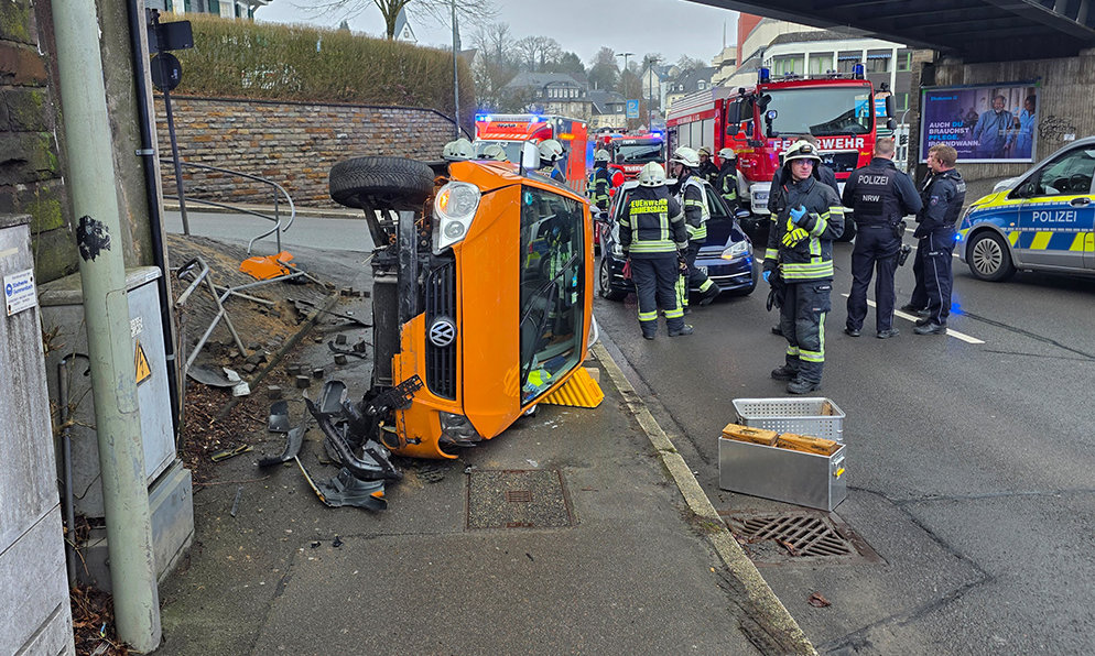 Crash auf der Brückenstraße: Auto kippt unter Eisenbahnbrücke auf die Seite