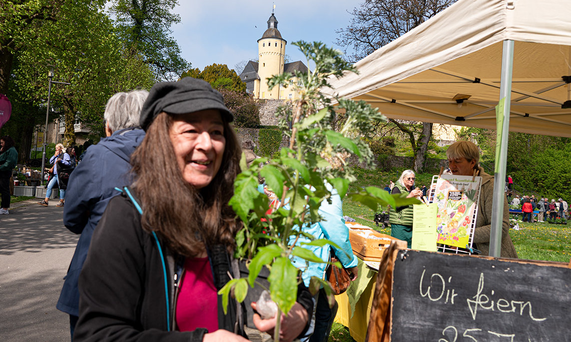vma; 26.04.2026, 14:25 UhrNümbrecht – Die jährliche Pflanzentauschbörse auf Schloss Homburg lockte wieder viele Gartenfreunde und Hobbygärtner an, die bei angenehmen Temperaturen fachsimpelten und nicht nur bei der Biologischen Station Oberberg Informationen erhielten.