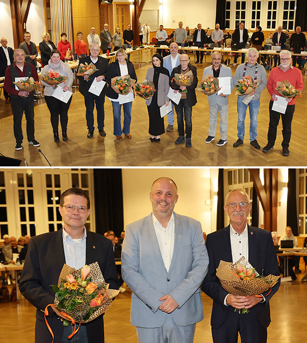 [Mehrere ehemalige Ratsmitglieder wurden verabschiedet (Foto oben). Dr. Christoph Stenschke (li.) und Detlef Kämmerer (re.) sind die neuen Vertreter von Bürgermeister Matthias Thul (Foto unten).]
