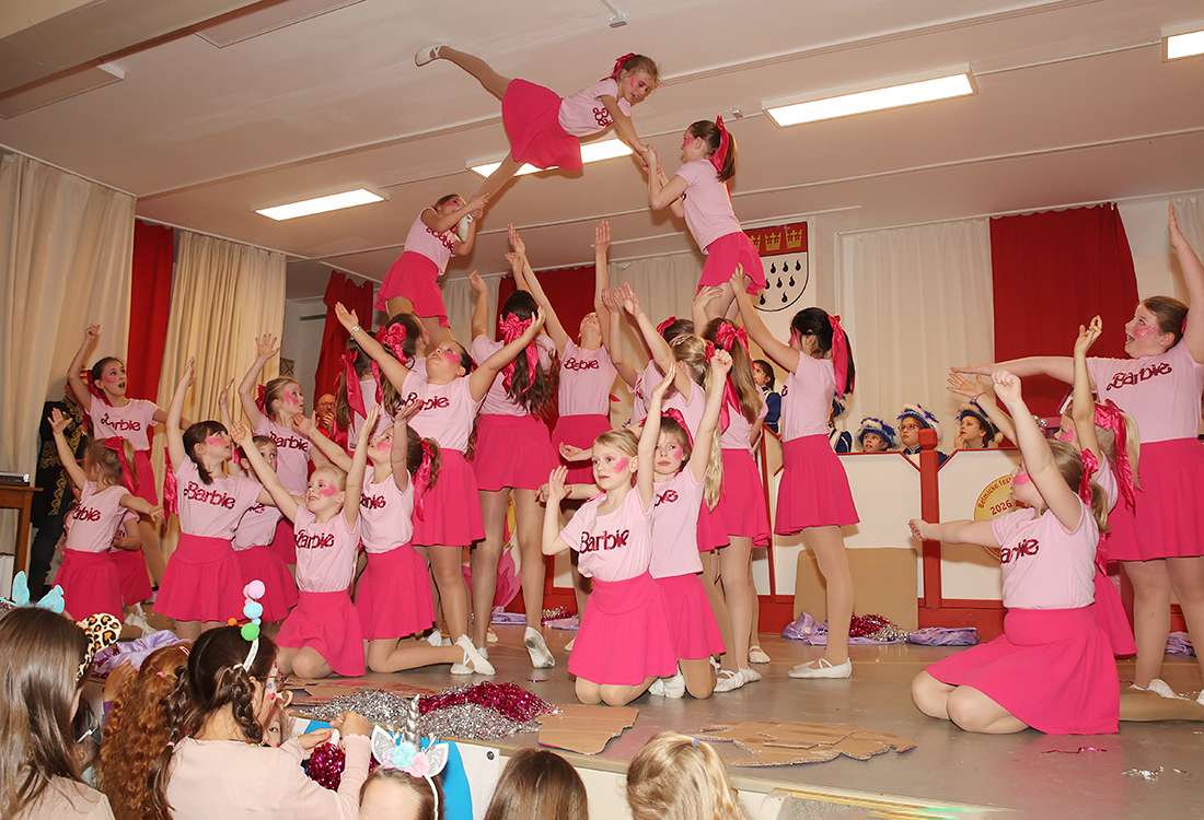 Die „Blauen Funken Belmicke“ eröffneten den schwungvollen Nachmittag, gefolgt von der „Rasselbande Belmicke“, die mit sichtbarer Begeisterung ihr spielerisches und tänzerisches Können zeigte. Auch die „Dräuzler Rosegarde“ begeisterte das Publikum, bevor bei einer gemeinsamen Tanzpause alle Kinder selbst das Parkett erobern durften. Mit der „Tanzgarde Bleche Minis“ und der „Dräuzler Showgarde“ setzte sich das bunte Bühnenprogramm fort. Tolle Hebefiguren und Pyramiden aus kleinen Tänzern versetzten Kinder, Muttis, Väter und Großeltern gleichermaßen in Erstaunen. Natürlich durften auch die „Grünen Funken Belmicke“ nicht fehlen, die ebenfalls für viel Applaus im eigenen Wohnzimmer sorgten.