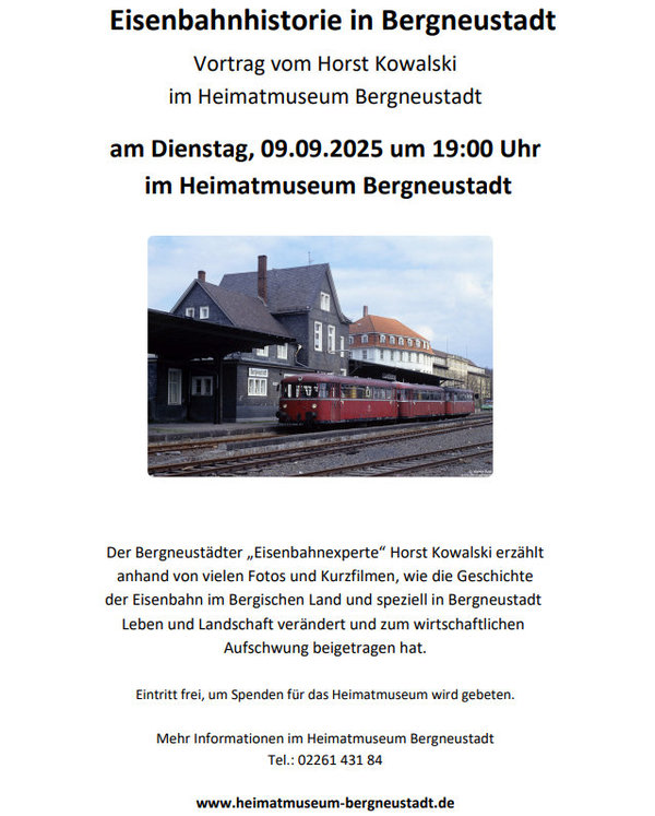 BERGNEUSTADT Eisenbahnhistorie in Bergneustadt TEILEN Red; 07.08.2025, 16:36 Uhr Bergneustadt - Vortrag von Horst Kowalski im Heimatmuseum Bergneustadt. WERBUNG