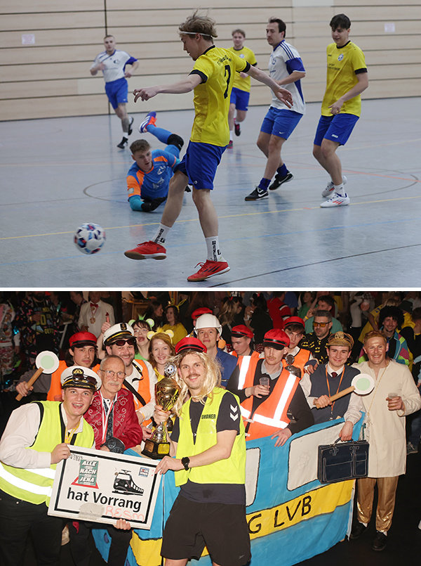 [Nach spannenden Fußballspielen am Vormittag gab es bei der Karnevalsparty am Abend den Siegerpokal für die SG LVB Leipzig.]