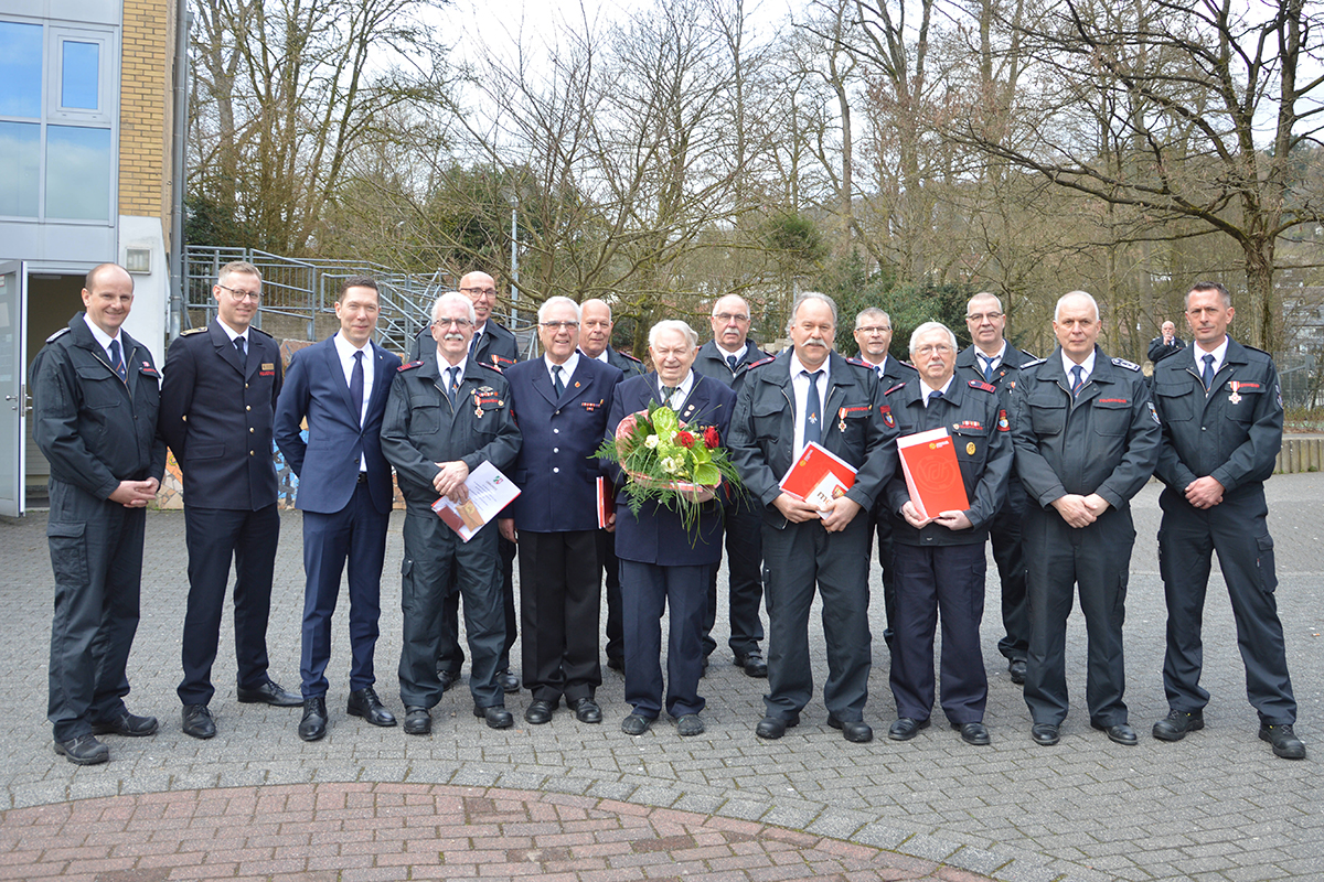 Im Anschluss nahm die Feuerwehr mehrere Ehrungen (60), Ernennungen bzw. Entlassungen (37), Überstellungen (17) und Beförderungen (48) vor. Auf 70 Jahre Mitgliedschaft in der Feuerwehr kann Jürgen von Montigny zurückblicken. Seit 60 Jahren verrichten Erhard Diehl, Peter Florkowski, Gunter Franken, Friedhelm Köster und Walter Krieger ihren Dienst für die Feuerwehr. Für 50 Jahre wurden Jürgen Bauer, Thomas Gerlach, Rainer Gräfer, Lutz Nöckel, Edgar Reichling, Michael Schwendt und Steffen Steinhauer geehrt.