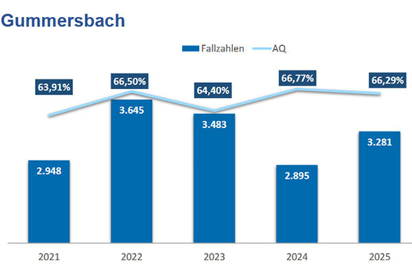 Hier steht mit 411 Fällen die niedrigste Zahl seit fünf Jahren, 86 weniger als im Vorjahr. Dies gelte auch für die Fallzahlen Raub sowie schwere und gefährliche Körperverletzung auf Straßen, Wegen und Plätzen, Kriminalität im öffentlichen Raum also (2025: 143, 2024: 162). An diesem Beispiel zeigt sich auch stellvertretend, dass die Kreisstadt Gummersbach als Tatort im Vergleich zu den anderen Kreiskommunen mit weniger Einwohnern eine „herausragende Rolle“ einnehme. Von den 143 Fällen passierten 60 in Gummersbach. In Bezug auf die Gesamtkriminalität kann man sagen: Rund 30 Prozent der Straftaten im Kreis wurden in der Kreisstadt verübt, was aufgrund des städtischen Charakters „nicht überraschend oder auffällig“ sei, so Grootens.