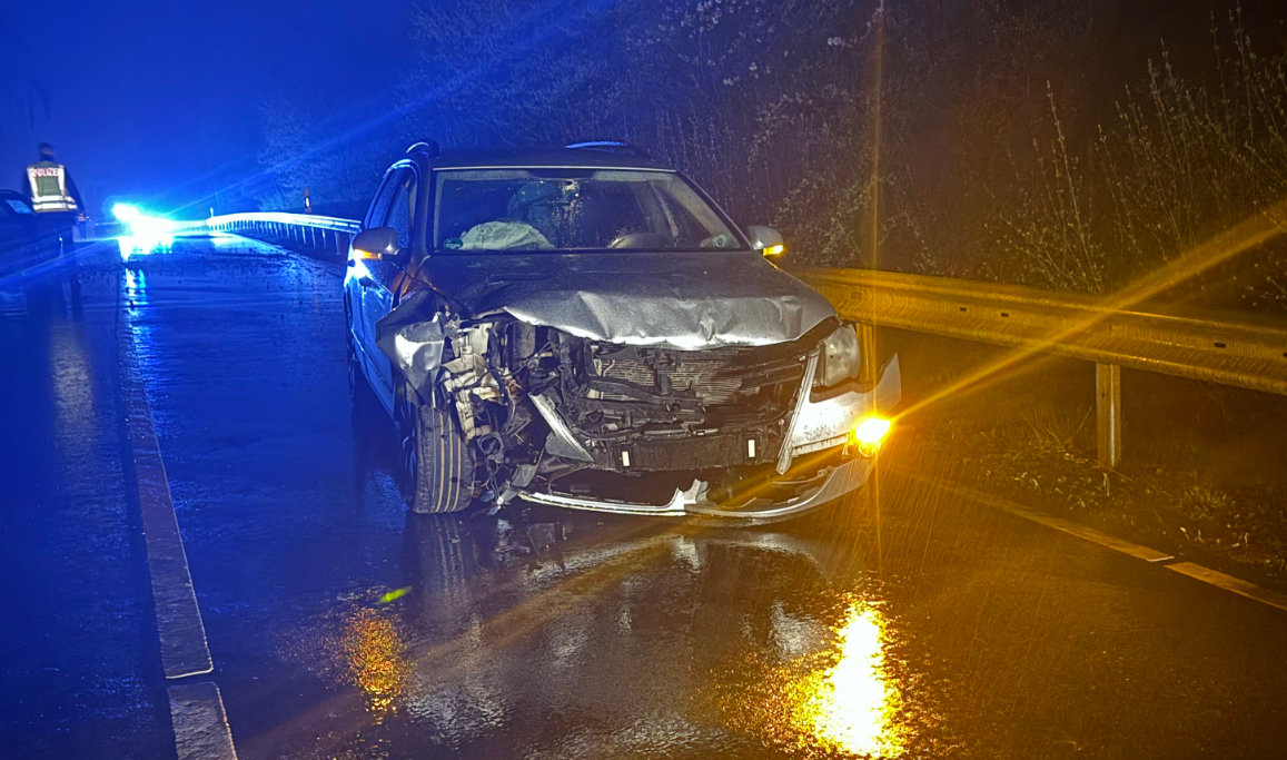 Durch den Aufprall schleuderte das Auto weiter und schließlich in die Leitplanke. Die beiden Insassen in dem nachfolgenden Wagen wurden leicht verletzt und kamen mit Rettungswagen ins Krankenhaus. Der Unfallverursacher stieg aus seinem Fahrzeug aus und flüchtete zu Fuß, heißt es in der Meldung. Der Schaden wird auf rund 25.000 Euro geschätzt. Die Ermittlungen dauern an.