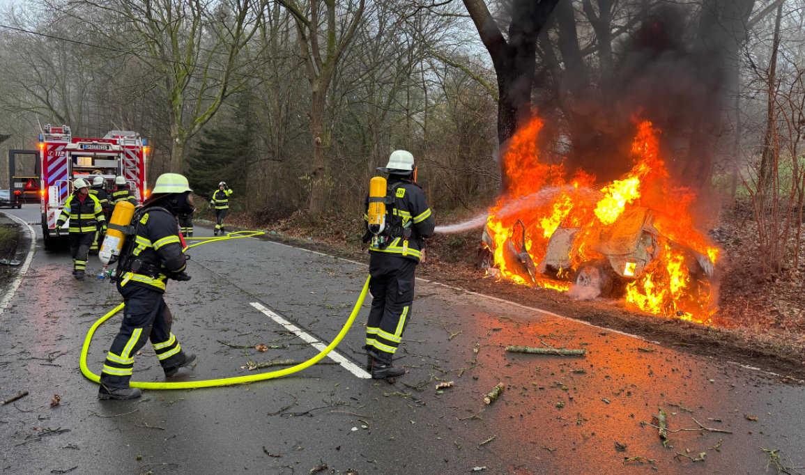 Lindlar – 18-Jähriger prallte gegen einen Baum und wurde schwer verletzt – Mitsubishi brannte aus.