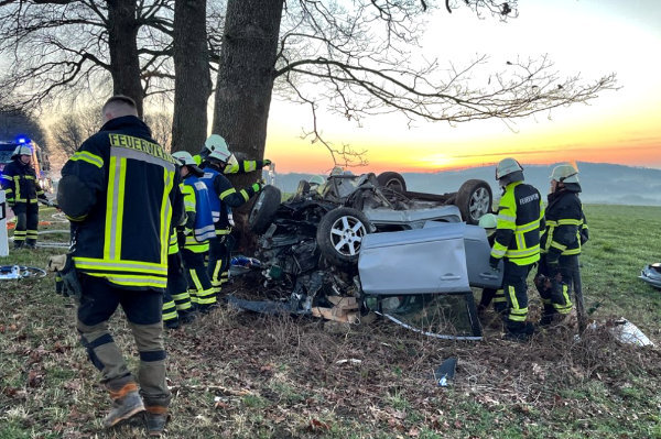 Unglück mit tragischen Folgen in Lindlar: Dort ist am Mittwochmorgen ein Autofahrer bei einem Alleinunfall ums Leben gekommen. Er war gegen 6:30 Uhr auf der K 24 zwischen Oberbergscheid und Waldbruch unterwegs, als er aus ungeklärter Ursache von der Fahrbahn abkam und frontal gegen einen Baum prallte. Der Wagen kippte nach der Kollision aufs Dach.