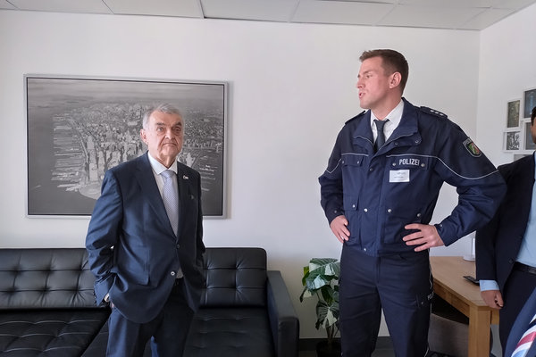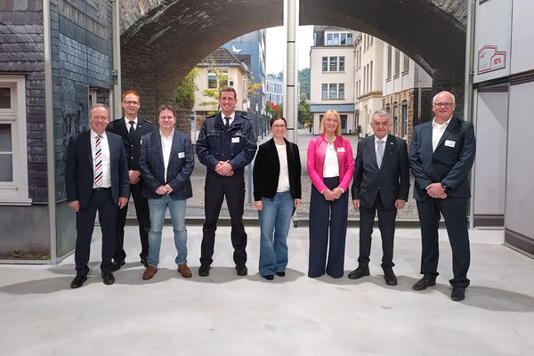 [Klaus Grootens (2. v. l.), Landrat des Oberbergischen Kreises, zusammen mit NRW-Innenminister Herbert Reul (3. v. l.).]