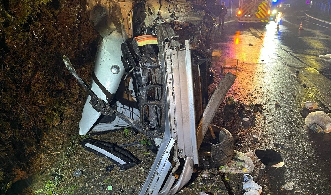 Durch herumfliegende Autoteile wurde ein geparkter Wagen beschädigt. Der Mann konnte sich selbständig aus dem Auto befreien. Ein freiwillig durchgeführter Atemalkoholtest fiel mit über zwei Promille positiv aus. Der 20-Jährige kam mit leichten Verletzungen ins Krankenhaus. Der BMW wurde sichergestellt.