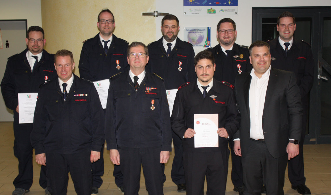 Danach rekapitulierte Christian Stangier das vergangene Jahr, das mit 117 Einsätzen (62 Brandeinsätze, 55 technische Hilfeleistungen) ein eher ruhiges gewesen sei. Wie gut interkommunale Zusammenarbeit gelinge, werde an den gemeinsam mit der Feuerwehr Waldbröl durchgeführten Grundausbildungen (Module 1–4) erkennbar, warb er darum, auch künftig Lehrgänge, Seminare und Fortbildungen auf Kreis- und Landesebene zu besuchen. „Feuerwehr funktioniert nur, wenn alle Aktiven regelmäßig an den Übungsdiensten teilnehmen, sich fortbilden und man sich stets aufeinander verlassen kann.“ Motivation für die herausfordernde Aufgabe erwachse durch Wertschätzung, moderne Feuerwehr-Infrastruktur, zeitgemäße Technik und einen kommunikativen, offenen Umgang miteinander.