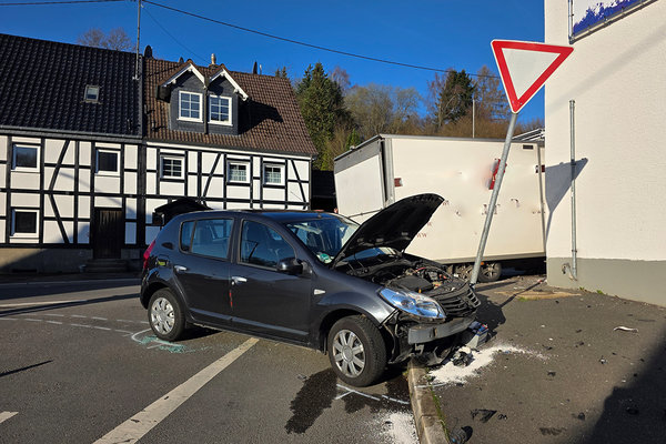 Ein Fahrfehler hat vermutlich am Mittwochvormittag zu einem Verkehrsunfall auf der Hückeswagener Straße im Gummersbacher Ortsteil Windhagen geführt, bei dem drei Menschen verletzt wurden. Wie die Polizei vor Ort berichtete, war der Fahrer eines Bäckerei-Transporters, ein 21-jähriger Gummersbacher, gegen 7:29 Uhr auf der Hückeswagener Straße in Richtung Kotthausen unterwegs, als es zu dem Fahrfehler kam und er nach rechts in den Gegenverkehr ausweichen musste. Hierbei kollidierte er mit dem Dacia Sandero einer Gummersbacherin (52), die aus der Burgstraße auf die Hückeswagener Straße abbiegen wollte.