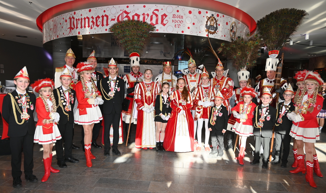 Kinderprinzenführer Felix Sassenhausen freute sich über die Möglichkeit, vor Ort sein zu dürfen, stellte die Kinder vor und erklärte die wichtige Multikulti-Bedeutung des Kinderordens. Das Trifolium, in diesem Jahr von der Prinzen-Garde gestellt, freute sich über den Besuch und die Orden, auf die man ein dreifaches „Alaaf und Kall Du“ ausrief. Das Dreigestirn revanchierte sich mit Stickern für alle Kinder, hielt einen Plausch und im weiteren Verlauf gab es sogar ein gerahmtes Foto als Erinnerung. Große und kleine Tollitäten nutzten die Möglichkeit für gemeinsame Fotos, bevor die Herren sich in ihre Gemächer zurückzogen. Ein weiterer Orden wurde an Dorint-Mitarbeiter Frank Schönherr verliehen, der die Treffen stets mitarrangiert hatte.