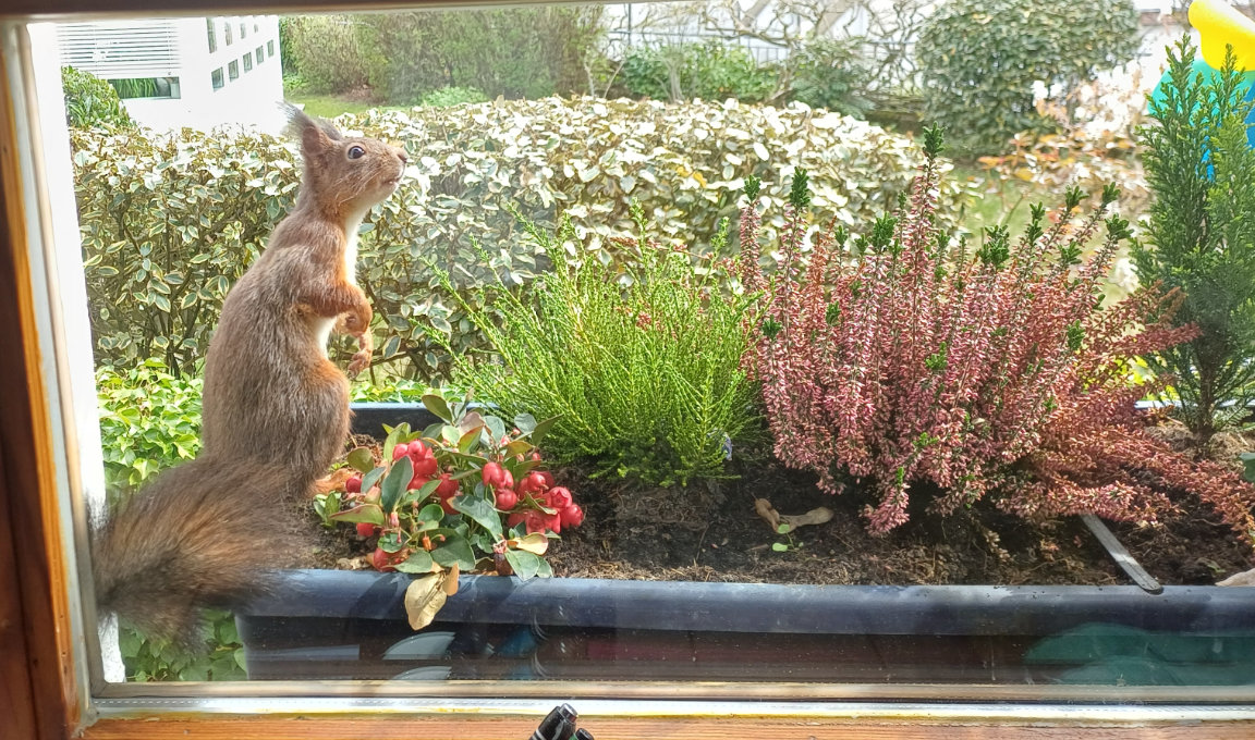 OA-Leser Helmut Weber fotografierte das Eichhörnchen im Blumenkasten.