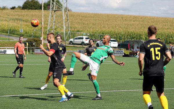 Mit zunehmender Spieldauer stellten sich die Hausherren besser auf die Angriffe der Mertener ein, ohne jedoch selbst für Gefahr zu sorgen. Bei einem Halbvolley von Michael Okoroafor war derweil erneut Löhe auf dem Posten (29.). Die Führung für Schönenbach hatte sich nicht angedeutet, war aber umso feiner herausgespielt: Elham Isakoski bediente Jordi Scherbaum mit einem Steckpass auf der rechten Seite. Dessen Flanke köpfte Umut Kizilyar wuchtig ein – 1:0.