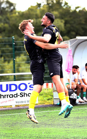 [Umut Kizilyar freut sich mit Flankengeber Jordi Scherbaum über das 1:0.]