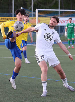 [Nümbrechts Ritsuki Oyama im Zweikampf mit dem Wiehler Yannik Clemens.]