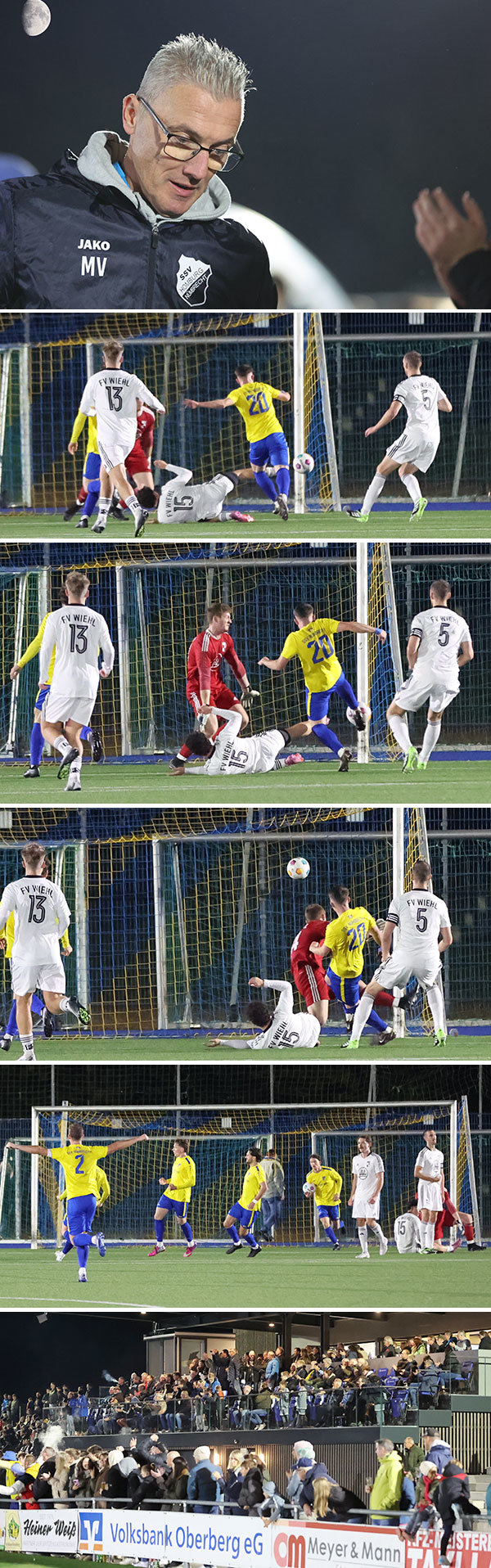 [Das 0:1 durch Florian Liebelt (nicht im Bild), Paul Neuendorff betätigt sich noch als Hürdensportler und überspringt Matteo Tessarolo.]