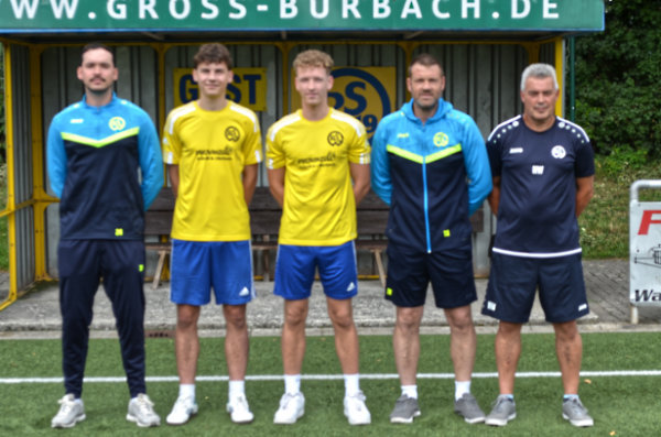 [Foto: privat --- Die Trainer Oliver Rempel (2.v.re.) und Marco Smuda (li.) sowie der sportliche Leiter Holger Wirtz (re.) mit den Neuzugängen Gustav Baum und Marlon Held.]