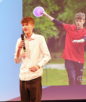 [Der 15-jährige Janne Timm Feldhoff wurde 2025 Deutscher Juniorenmeister im Disc-Golf, errang den Sieg bei der Disc Golf Tour North und ist Mitglied des deutschen Nationalkaders.]