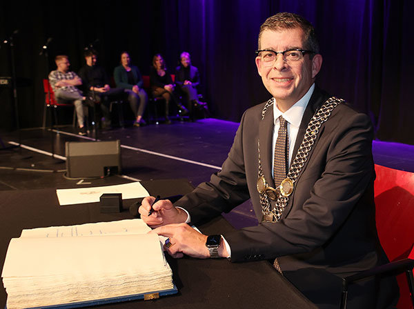 [Auch ins Goldene Buch der Stadt Gummersbach trug sich Frank Helmenstein ein.]
