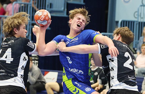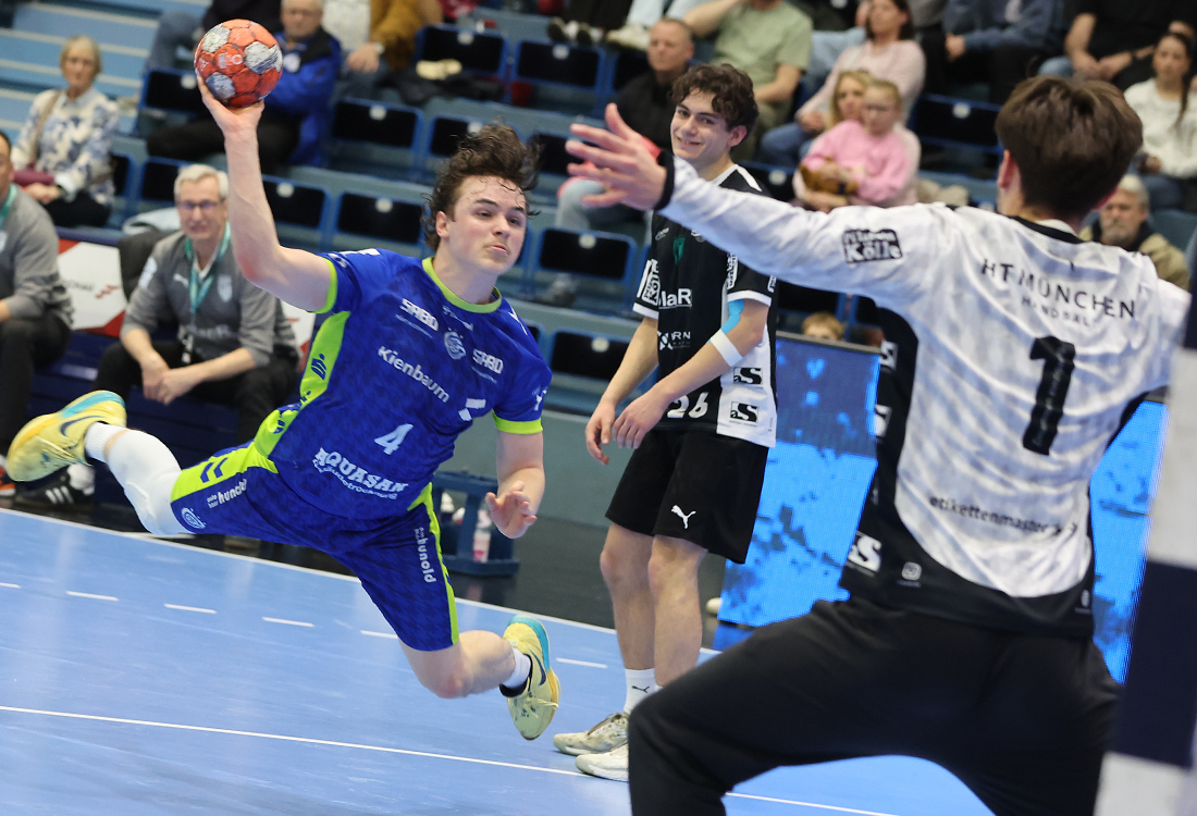 Große Kulisse für die U19 des VfL Gummersbach: In der gut gefüllten SCHWALBE arena sahen die Zuschauer einen jederzeit engen Schlagabtausch der beiden Finalisten um den DHB-Pokal. Nachdem zunächst HT München mit 7:5 (15.) in Führung lag, kamen die Gastgeber besser in Fahrt. Unterstützt durch einige Paraden von Tjorven Knackstedt schien der VfL beim 10:7 (21.) wegzuziehen. Im Rückraum waren mit Julien Kübler und Hannes Hartmann zwei Spieler dabei, die zum Ende der regulären Saison länger gefehlt hatten. Dafür musste Trainer Jan Schwenzfeier größtenteils auf den erkrankten Malte Haglund verzichten, genau wie auf Malte Riedel, der sich im Laufe der ersten Halbzeit verletzte.
