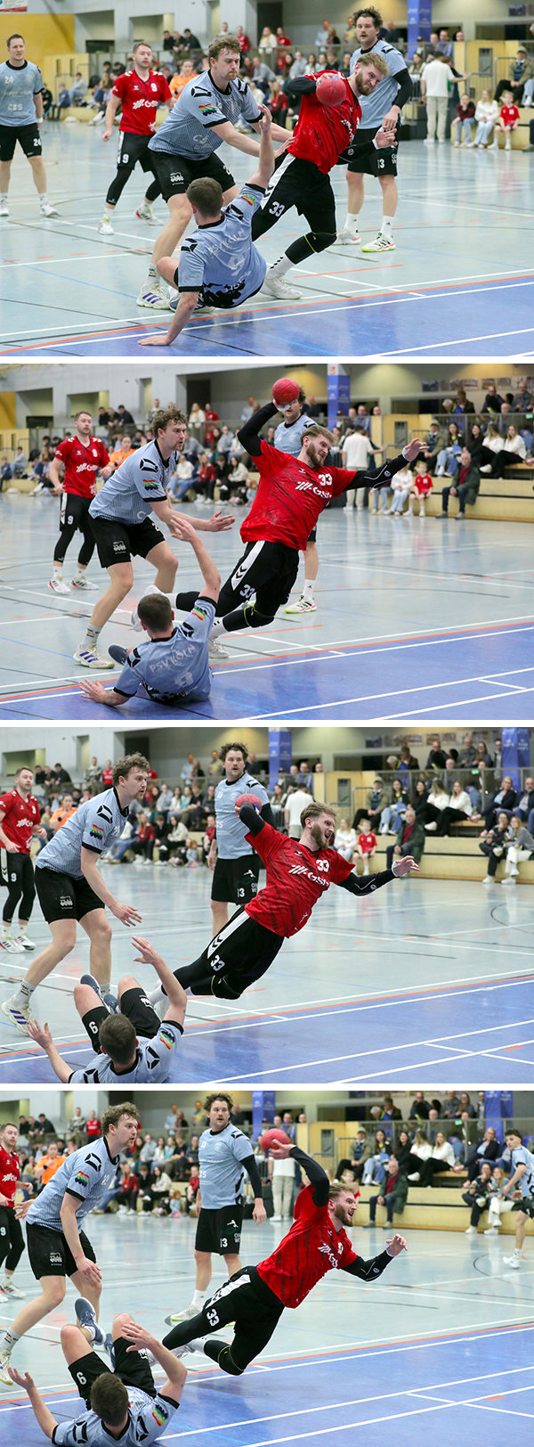 Nach dem Seitenwechsel wurde es nicht besser. Immer wieder kamen die Hausherren einen Schritt zu spät und leisteten sich weiterhin eine Vielzahl von technischen Fehlern. „Das bestraft so ein Gegner wie Köln, der ruhig bleibt und seinen Stiefel runterspielt. Wir sind dann komplett zusammengebrochen“, meinte Schüttenhelm. Über 18:21 (34.) und 22:28 (42.) ging es mit 25:33-Rückstand (49.) in die Crunchtime, in der die Oberwiehler es mit der Brechstange versuchten und auf Manndeckung umstellten. Die Maßnahme trug Früchte. Oberwiehls Phil Nückel verkürzte auf 32:35 (57.) und die Hausherren waren zurück im Spiel. „Aber wir sind nicht ruhig geblieben und haben einen schwierigen Wurf genommen, der am Pfosten landete. Köln macht im Gegenzug das Tor und die Messe war gelesen“, ärgerte sich der Coach. „Die Jungs haben sich zu viel Druck gemacht. Daraus müssen wir lernen.“ (thg)