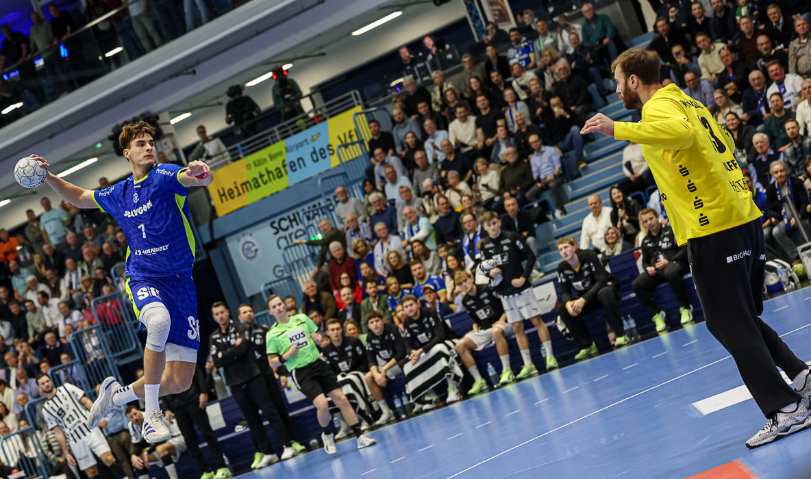 Insbesondere die erste Halbzeit war beim VfL Gummersbach von technischen Fehlern geprägt – neun an der Zahl. Nach dem 1:0 für die HSG traf Miro Schluroff aus dem Rückraum wenig später zur ersten Gästeführung (2:3).