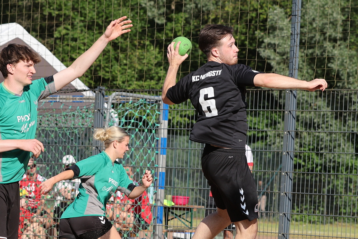 Der Sieg war diesmal allerdings deutlich umkämpfter. Oberwiehl, das beim eigenen Turnier noch überraschend nur Vorletzter geworden war, sah nach gewonnenem erstem Durchgang eigentlich schon wie der sichere Champion aus. Auch im zweiten Durchgang führte das Team um Moritz Madel kurz vor dem Abpfiff mit drei Punkten. Doch ein Frauen-Torhüter-Tor, das im Mixed vier Punkte zählt, rettete die Gummersbacher Sekunden vor dem Ende ins Shoot-Out. Dort hatte das KC-Team mit Moritz Banaschewitz dann einen Zocker zwischen den Pfosten, der mit seinen taktischen Ausflügen aus seinem Kreis für die Entscheidung sorgte.