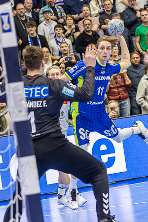 Doch in der Schlussphase zeigte sich einmal mehr die Cleverness und Qualität des Topteams aus Magdeburg. „Sie haben die Erfahrung und machen das extrem gut“, fand auch Ellidi Vidarsson, dessen Vertragsverlängerung bis 2029 vor dem Spiel bekanntgegeben wurde (siehe Bericht). Mahé produzierte nun einen Schrittfehler und einen Fehlwurf, was die Gäste zum 27:28 (55.) nutzten. Über 29:29 (56.) besorgte Julian Köster mit seinem fünften Treffer den 31:31-Ausgleich. Im Gegenzug erkämpfte sich Omar Ingi Magnusson gegen Kristjan Horzen den letzten Siebenmeter, der Rest ist bekannt.