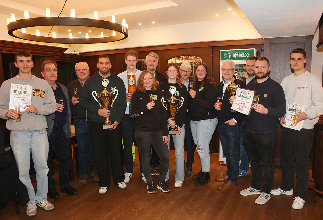 Den Zunft-Kölsch-Pokal der Männer gewann die 1. Mannschaft des HC Gelpe/Strombach mit einem 28:26-Finalsieg gegen den SSV Nümbrecht. Bei der Ehrung im Braustübchen nahm das Team neben dem Pokal einen Scheck über 750 Euro sowie einen Gutschein über 100 Liter Zunft-Kölsch entgegen. Der SSV Nümbrecht, der bei der Siegerehrung nur mit einer Rumpfmannschaft vertreten war, erhielt als Zweitplatzierter 500 Euro und 50 Liter Zunft-Kölsch. Die HSG Marienheide/Müllenbach durfte sich als Sieger des HKO-Finales über 250 Euro und 30 Liter freuen – jeweils zur Förderung der Jugendarbeit.
