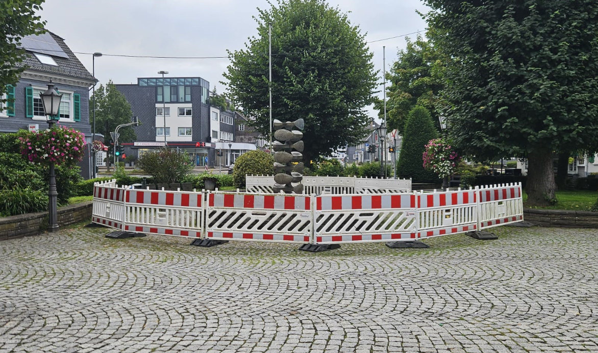 Der Brunnen auf dem Wilhelmsplatz in Hückeswagen – im Volksmund „Schaschlikbrunnen“ genannt – ist derzeit abgesperrt, teilt die Stadtverwaltung mit. Zur Neugestaltung des Wilhelmsplatzes im Rahmen des Integrierten Stadtentwicklungskonzepts (ISEK) laufen derzeit vorbereitende Maßnahmen. Dabei wird das Fundament des Brunnens genau untersucht.