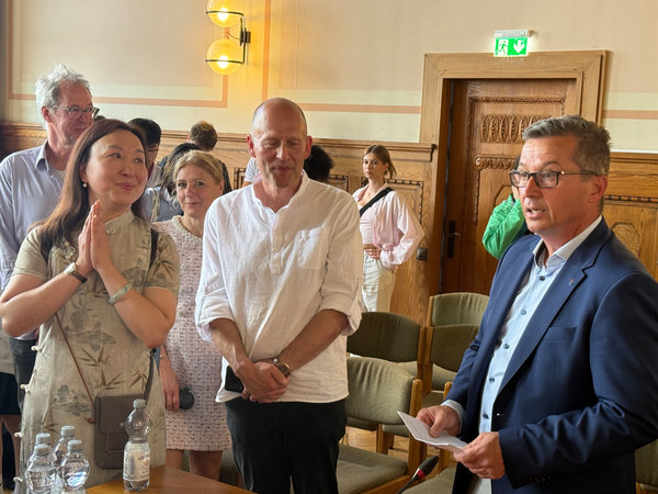 [Dr. Thomas Täubner (re.) und Jens Groll hatten die Delegation aus Fernost empfangen.]