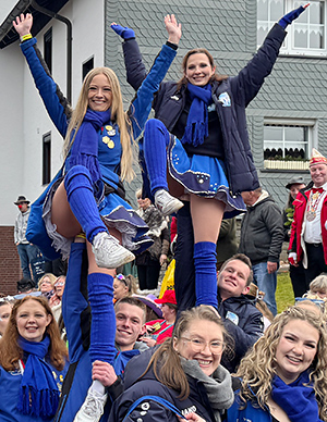 [Mit Freiluft-Akrobatik und dem Macarena Tanz ließen die Blue Girls des TV Ruppichteroth die Stimmung am Wegesrand steigen.]