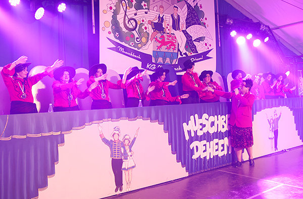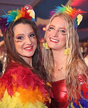 Keine Zeit zum Durchatmen blieb den fantasievoll kostümierten Ladies, denn die fünf Jungs von Cat Ballou machten mächtig musikalischen Betrieb im „Mueschbecher Gürzenich“. Zu „et jitt kein Wood“, „auf die gute Zeit“ oder „Eau de Cologne“ lieferten die Musiker um Frontmann Oliver Niesen eine tolle Bühnenshow, während der Morsbacher Background-Chor auf den Bänken tanzte und das Zelt in die heißeste Partylocation nördlich der Alpen verwandelte. „Boah ihr könnt feiern“, zeigten sich die Kölsch-Rocker beeindruckt von der Damen-Performance.