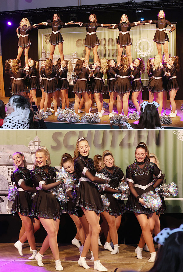 Großen Eindruck hinterließen auch die 32 Tänzerinnen der Showtanzgruppe „Die Raketen“ vom VfR Marienhagen. Mit hohem Tempo, akrobatischen Hebefiguren und viel Ideenreichtum rissen sie das Publikum von den Sitzen. Tänzerin Antonia Harting zeigte sich im Vorfeld selbstbewusst: Die Session laufe bisher hervorragend, das Team sei bestens eingespielt. „Wir erwarten heute gute Stimmung, ganz viel Applaus und einfach einen richtig guten Auftritt“, sagte sie – Erwartungen, die am Abend erfüllt wurden.