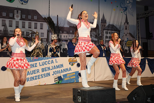 Nach dem Einmarsch und den ersten Tänzen des Tanzcorps Blau-Weiß Neye nahm das Programm ordentlich Fahrt auf. Mit den Funky Marys aus Köln folgte ein erster musikalischer Höhepunkt, der die VOSS-Arena endgültig auf Betriebstemperatur brachte. Mit ihren bekannten Hits, viel Energie und direktem Draht zum Publikum verwandelten sie den Saal in eine einzige Mitsing- und Tanzfläche.