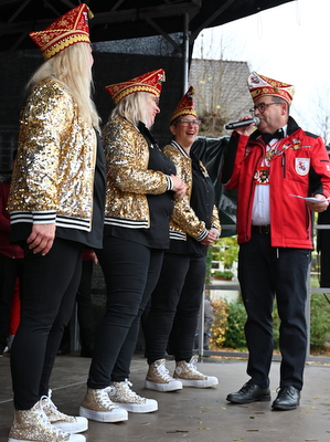 Den tänzerischen Reigen eröffnete der TSC Lindlar mit Gemeinschafts- und Solotänzen. Unter die vielen Besuchern aus dem Ort hatten sich auch befreundete Vereine und die eine oder andere Tollität gemischt, die den Platz so sehr bunt erscheinen ließen. Der KV Bielstein, der Ründerother Karnevalsverein, Rot-Weiß Denklingen, die Karnevalsfreunde Schönenbach, die Närrischen Oberberger aus Engelskirchen, der KV Fenke und die Sünger Butzen hatten teils große Abordnungen geschickt. Aus Wipperfürth war das junge Dreigestirn der Narrenzunft Neye in vollem Ornat angereist, um dem designierten Dreigestirn in Lindlar seine Aufwartung zu machen.