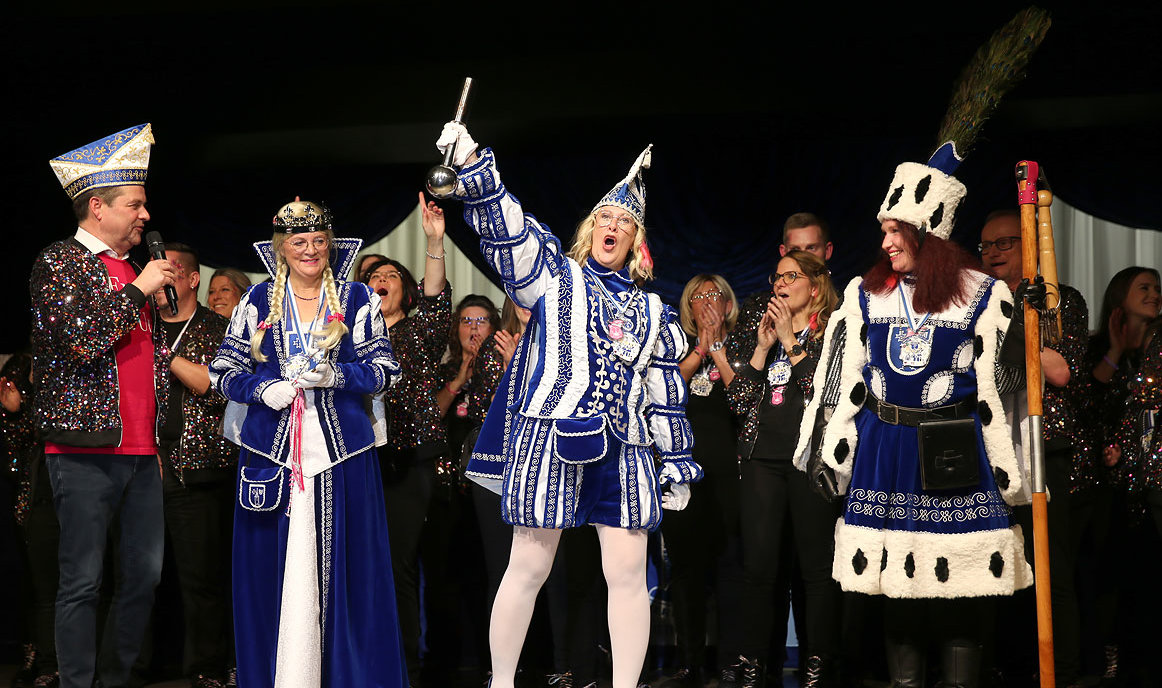 „Dass ich das noch erleben darf“, zeigte sich der Verwaltungschef baff, bevor er Prinz Conny I., Bauer Melli und Jungfrau Nico in Amt und Würden setzte. Ein Damen-Dreigestirn spreche für Weltoffenheit und Gleichberechtigung, schickte er das Trifolium mit dem klaren Auftrag in die Session, mengenweise Freude, Frohsinn und Heiterkeit in die Welt zu tragen. Mit ihrem Motto „Wir leben, wir lieben, wir lachen - wir sind wie wir sind. Mal laut und mal ganz leise, doch im Karneval gehen wir alle auf eine fantastische Reise“, startete das jecke Trio in „seine“ fünfte Jahreszeit. Für den Regionalverband Rhein-Berg im Bund Deutscher Karnevalisten überbrachte Philipp Schäfer die Glückwünsche für „die geilste Reise eures Lebens“. In seiner Funktion als oberbergischer Vizepräsident im Regionalverband RRB ehrte Michael Röser das Ehepaar Monja und Wolfgang Müller für sein langjähriges ehrenamtliches Engagement in Reihen der KVB- Tanzgruppen mit dem goldenen Verdienstoden und überreichte eine Ehrenurkunde.