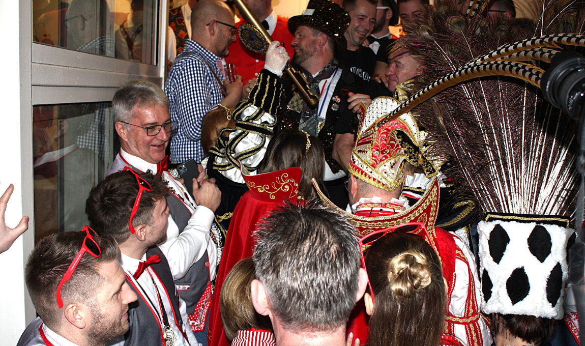 Reichshof – Reichshofs Bürgermeister Jan Gutowski musste heute erstmals seinen Amtssitz gegen die Karnevalisten aus der Gemeinde verteidigen – Sein Erfolg war überschaubar.
