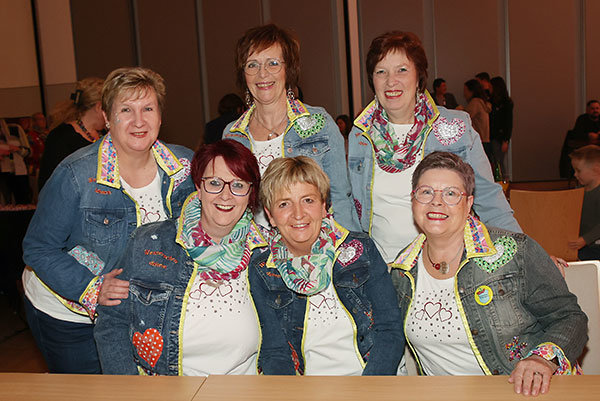 [Gemeinsam mit ihrer Präsidentin Sandra Lauff (vorne links) besuchten die Mitglieder des Damenelferrats Wendershagen ihre jecken Freunde von der KG Morsbach.]