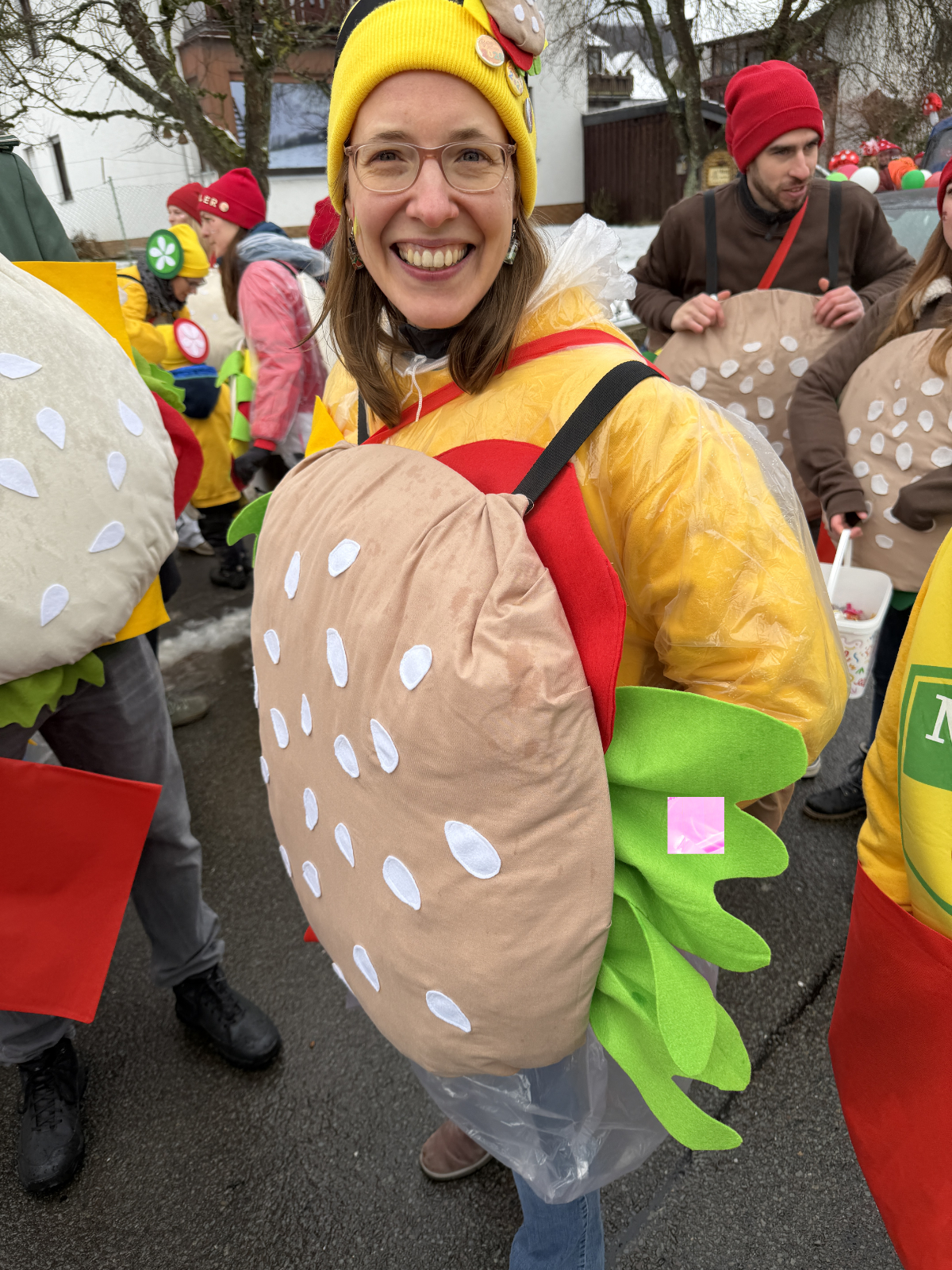 Nicht nur die Handballer aller Teams genossen das Bad in der Menge. Stark vertreten ist auch immer der Bürgerverein Scheel. „Die Kinder haben über das Motto entschieden“, berichtete Marko Feldhoff. Und deshalb hatten die Zugteilnehmer den Umlaut aus dem Vereinsnamen gestrichen, um als „Burgerverein“ samt „Burgermeister“ in aufwendig selbstgestalteten Kostümen im Hamburger-Style am bunten Lindwurm teilzunehmen. Stammgäste beim Kinderzug sind auch die Dancing Daddys, die heute als „The Greatest Showdaddys“ in feine Zwirne geschlüpft waren. Beim letzten Auftritt der Session in der Scheelbachhalle wollen sie es noch einmal richtig krachen lassen.