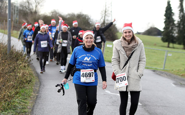 Als am Vormittag die Anmeldungen entgegengenommen wurden, staunten die Organisatoren nicht schlecht, als plötzlich ein Riesenpulk an Teilnehmern auftauchte. Der Lauftreff der DJK Adler Bottrop hatte sich als Ziel für seine jährliche Vereinsfahrt den Glühweinlauf ausgesucht und reiste mit einer 51-köpfigen Gruppe an. „Wir haben gegoogelt, wo es etwas mit Laufen und Weihnachten gibt“, erklärte Kathrin Herzog von den „Adlern“, die im Herbst einen eigenen Lauf ausrichten. Ob es zu einem Gegenbesuch kommt, ist nicht überliefert. Dem Vernehmen nach waren die Bottroper, die in allen Disziplinen an den Start gingen, nicht zum letzten Mal in Marienhagen zu Gast.