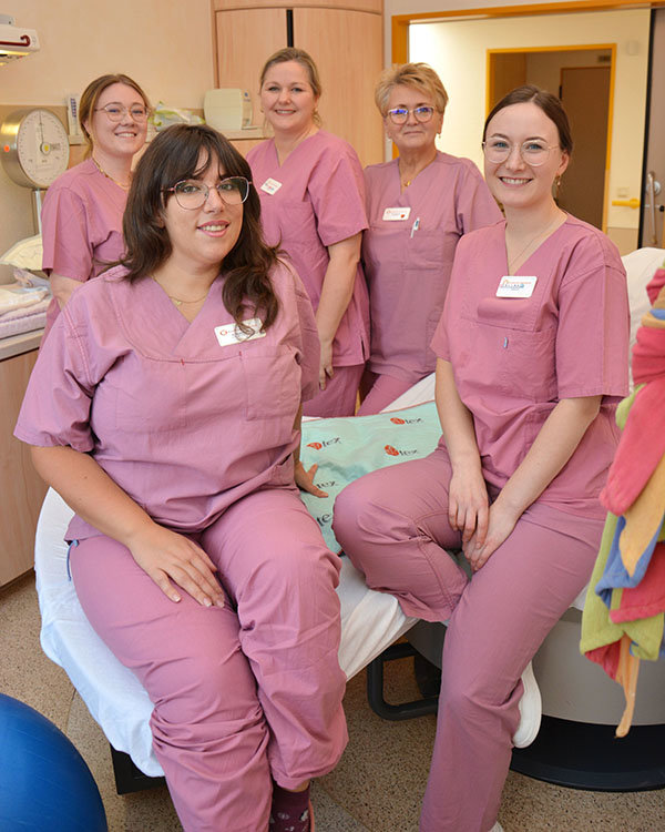 [Die Hebammen freuen sich auf die Geburten im hebammengeleiteten Kreißsaal.]