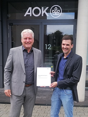 [Foto: Katharina Schmitz --- AOK-Regionaldirektor Frank Mäuer (l.) und Stefan Lopez Seijas, Analyst bei der AOK, haben den Gesundheitsreport 2025 vorgestellt.]