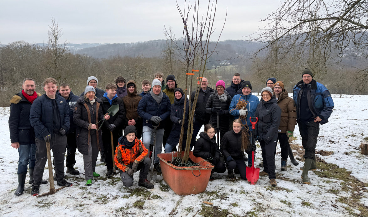Engelskirchen – KSK-Mitarbeiter pflanzten nach erfolgreich absolvierter Nachhaltigkeitsfortbildung zehn Setzlinge auf der Streuobstwiese Bellingroth.