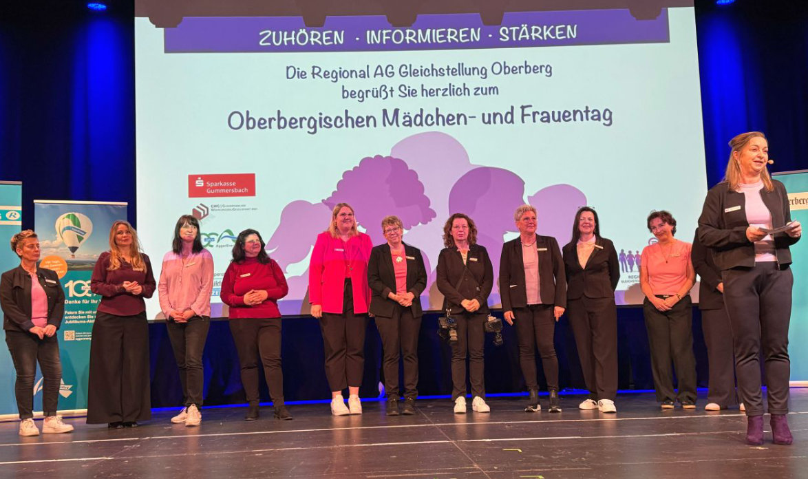 Organisatorin Nina Sommer, Gleichstellungsbeauftragte der Stadt Gummersbach und Sprecherin der Regional AG, widmete die Veranstaltung der am 1. Februar verstorbenen Bundespolitikerin Rita Süssmuth (CDU), die sich zeitlebens für Frauenrechte starkgemacht hatte. Sommer freute sich, dem Publikum einen Videogruß der NRW-Ministerin für Kinder, Jugend, Familie, Gleichstellung, Flucht und Integration des Landes Nordrhein-Westfalen, Verena Schäffer, zu präsentieren. In ihrer Grußbotschaft erinnerte Schäffer alle Besucher mit den Worten „Gleichstellung geht uns alle an“ daran, dass jeder Mensch eine Verantwortung für den gleichberechtigten Umgang mit seinen Mitmenschen trage, und wünschte allen „Impulse, die in den Alltag hineinwirken“.