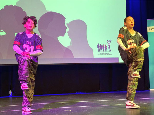 [Hip-Hop-Weltmeisterin Emma Pinger (11) und ihr Bruder Theo (13) aus Koblenz zeigten eine beeindruckende Performance auf der Bühne.]
