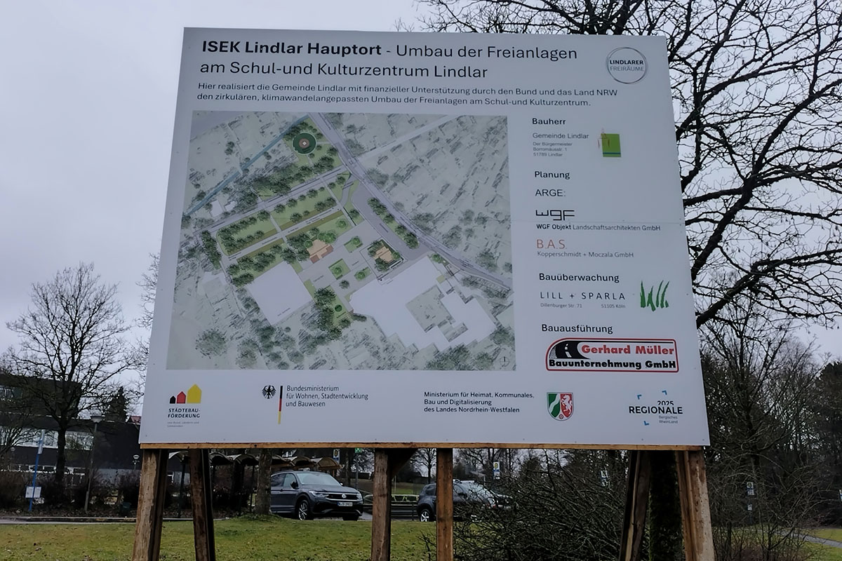 „Es geht wirklich los“, sagte Engelmann – und dass sich endlich etwas tut, sei nicht zuletzt ein wichtiges Signal. Einige waren zum Spatenstich gekommen, so etwa Landschaftsarchitekt Tilmann Fuchs vom bauausführenden Planungsbüro Lill+Sparla, Thomas Kemme, stellvertretender Geschäftsführer der „Regionale 2025 Agentur“ sowie Gerhard Müller und Julian Kolken von der ausführenden Baufirma Gerhard Müller aus Gummersbach. Auch Lindlars ehemaliger Bürgermeister Dr. Georg Ludwig, der das ISEK viele Jahre im Amt begleitet hat, war am Nachmittag zum Spatenstich gekommen – ebenso wie Vertreter aus Politik und Verwaltung.