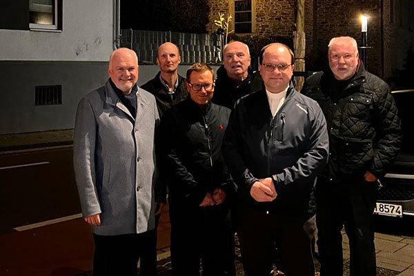 [Freuen sich über die neue Beleuchtung: Heinz-Peter Schröder (Eww, vorne, v.li.), Oliver Dubben (Adler Apotheke) und Markus Brandt (Kaplan) sowie Frank Wieczorek (Küster, hinten, v.li.), Wolfgang Wichary (Kirchenvorstand) und Werner Schenk (Kirchenvorstand).]