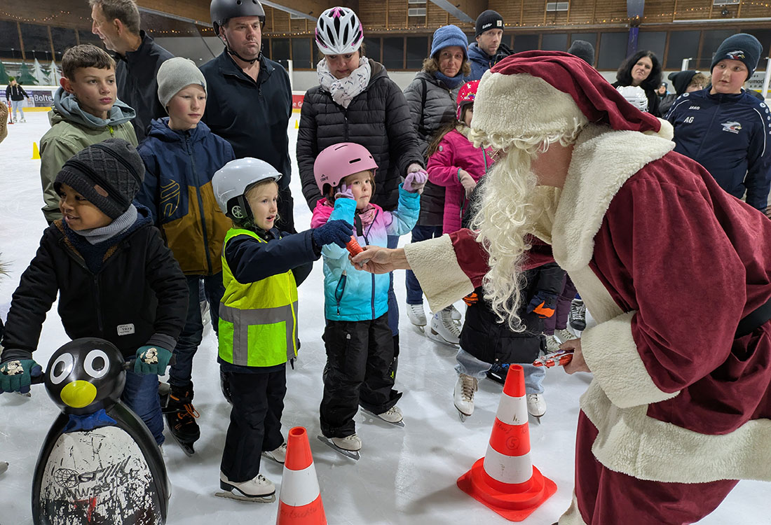 Wiehl - In der Wiehler Eishalle freuten sich die Gäste über einen besonderen Gast, der sogar Geschenke dabei hatte.